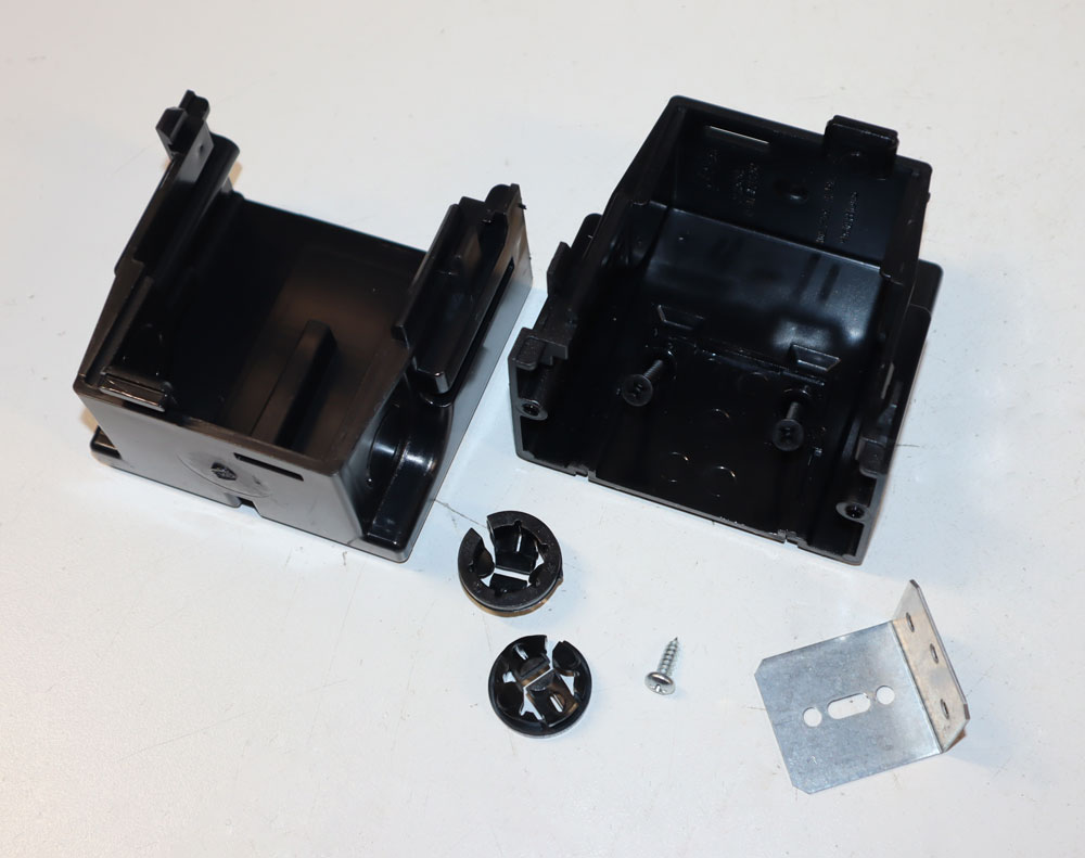 Use a Screwdriver to Disassemble or Separate the Parts; Add or Remove the Center Section (s), then Snap the Pieces Back Together Fast and Easy; Great-Looking Installation of Multiple Gang Boxes; Screw-On Style for New or Old Construction; Made in USA 3.688 inch x 2.044 inch x 3.5 inch, 2-Gang, Black Plastic, Screw-On/Bracket Mount, Gangable, New Construction, Electrical Outlet Box Electrical Outlet Box; Type Gangable, New Construction; Height 3.5 Inch; Width 3.688 Inch; Depth 2.044 Inch; Number of Gangs 2; Material Black Plastic; Mounting Screw-On, Bracket; Standard Package 10 per Pack; Approval UL