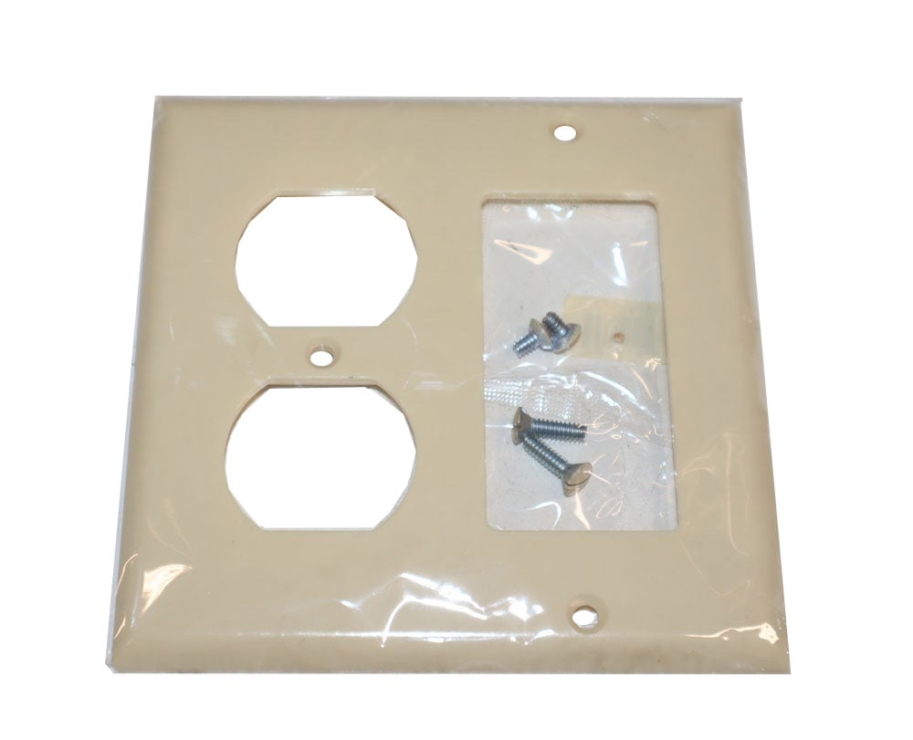 Wallplate; Configuration (1) Decorator, (1) Duplex Receptacle; Number of Gangs 2; Designated Size Standard; Material Thermoset; Color Ivory; Approval UL (Canada and US), UL 514D; Temperature Rating -40 to 194 Deg F; Size 4.56 Inch W x 4.5 Inch H; With Matching Mounting Screw; Packaging Type Box; ROHS Compliant; NAFTA Compliant