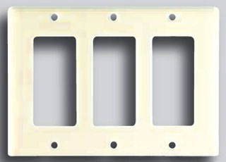 Wallplate; Type GFCI; Configuration (3) Decorator; Number of Gangs 3; Designated Size Standard; Material Thermoset; Color White; Approval UL (Canada and US), UL 514D; Temperature Rating -40 to 194 Deg F; Size 6.37 Inch W x 4.5 Inch H; With Matching Mounting Screw; Packaging Type Box; ROHS Compliant; NAFTA Compliant
