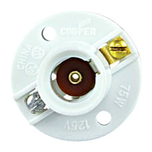 Cleat Socket; Type Stage Lighting; Operator Type Keyless; Construction Cleat; Lamp Base Miniature; Lamp Wattage 75 W; Voltage Rating 125 V; Body Material Thermoset; Body Color White; Terminal Type Screw; Approval UL 496, CSA C22.2, NOM; Wiring Type Front; Packaging Type Box