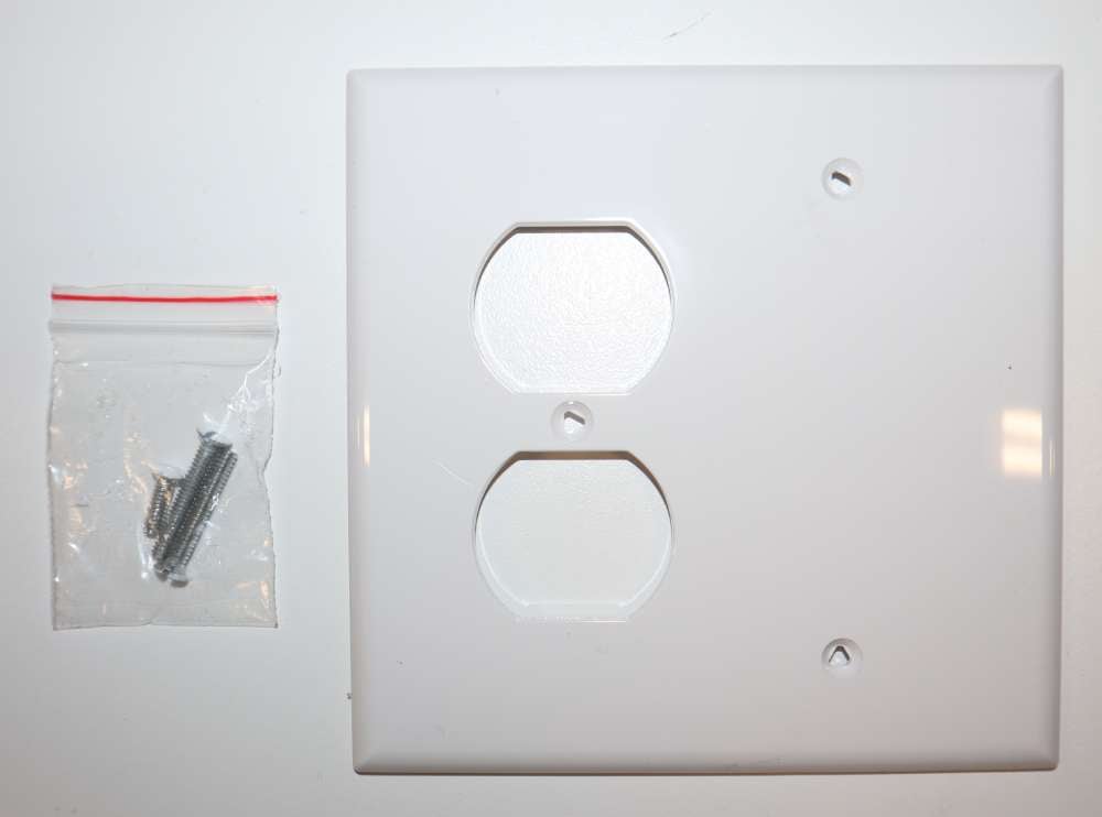 Wallplate; Configuration (1) Blank, (1) Duplex Receptacle; Number of Gangs 2; Designated Size Mid; Material Polycarbonate; Color White; Finish High Gloss; Approval UL (Canada and US), UL 514D; Temperature Rating -40 to 158 Deg F; Size 4.94 Inch W x 4.87 Inch H; With Matching Mounting Screw; ROHS Compliant