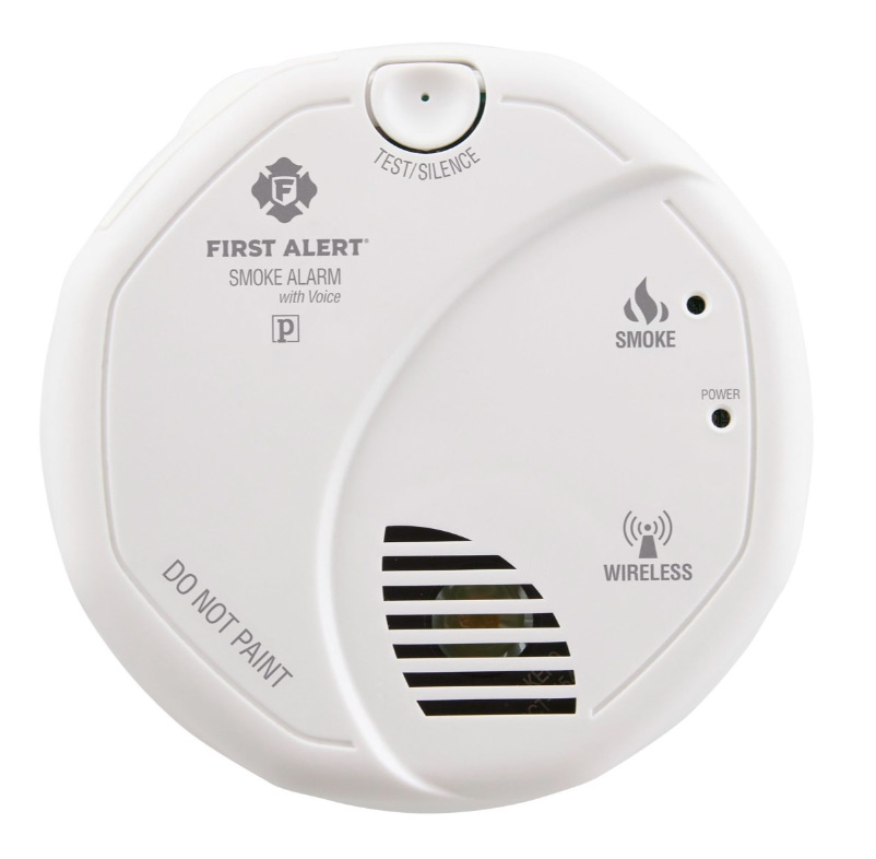 Wireless Interconnect, battery powered smoke alarm that has Voice Warning with location, replaceable battery and Silence feature. Includes photoelectric smoke sensing technology and two AA alkaline batteries.