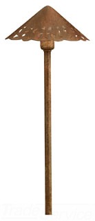 Landscape Path and Spread Light Fixture; Type Decorative Hammered Roof; Lamp Type Krypton/Incandescent/LED; Lamp Wattage 24.4 W; Lamp/Ballast Voltage 12 V; Mounting 8 Inch In-Ground Stake; Material Brass; Finish Textured Tannery Bronze; Size 8 Inch W x 22 Inch H; Approval UL (Canada and US), CSA, ETL (US); Lead Wire Length 35 Inch; Color Temperature 3156 K; Number of Lamp 1