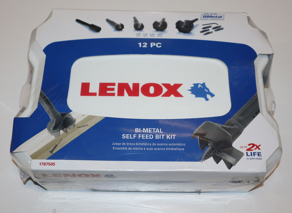 Self-Feed Bit Kit; Minimum Drill Size 1-3/8 Inch; Maximum Drill Size 2-9/16 Inch; Drill Sizes 1-3/8 Inch, 1-1/2 Inch, 2-1/8 Inch, 2-9/16 Inch; Material Bi-Metal, High Speed Steel (Cutting Edge); Number of Drills 12; Includes (5) Lead Screw, (1) Hex Wrench Set, (1) 5-1/2 Inch Extension, Slim Tape File