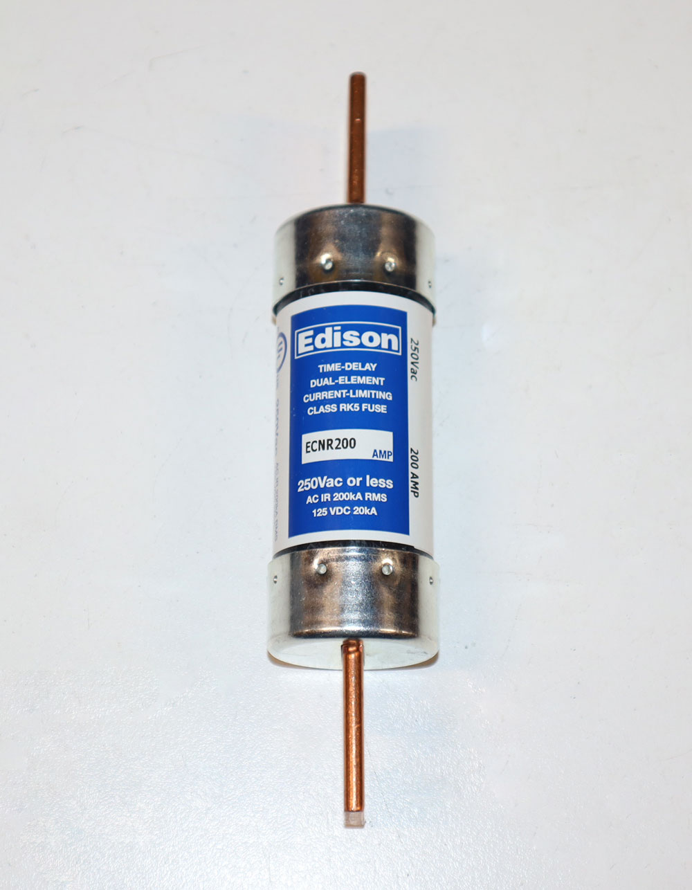 Low Voltage UL Power Fuse; Type Class RK5; Characteristics Time Delay; Voltage Rating 250 VAC/VDC; Current Rating 200 Ampere; Interrupting Rating 200 Kiloampere (AC), 20 Kiloampere (DC); Terminal Type Blade; Diameter 1-9/16 Inch; Length 7-1/8 Inch; Approval UL 248-12, CSA C22.2; Body Material Polyester; Contact Material Copper/Tin-Plated Copper; Mounting Type Clip; Application Motor Circuit, Main, Feeder, Branch Circuit, Transformer, Service Entrance Equipment, General-Purpose Equipment