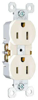 125 VAC, 15 A, NEMA 5-15R, 2-Pole, 3-Wire, Light Almond, Thermoplastic, Side/Push Wiring, Residential Grade, Grounding, Duplex, Straight Blade Receptacle