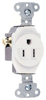 125 VAC, 15 A, NEMA 5-15R, 2-Pole, 3-Wire, White, PVC Back Body, Nylon Face, Corrosion Resistant, Side Wiring, Commercial/Specification Grade, Grounding, Single, Heavy Duty, Straight Blade Receptacle