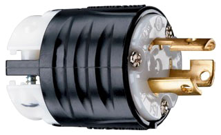 Locking Device Plug; Constructional Feature Corrosion Resistant; Configuration L5-15P; Voltage Rating 125 VAC; Current Rating 15 Ampere; Number of Poles 2; Number of Wires 3; Ground Type Grounding; Material Nylon; Color Black, White; Cord Size 0.23 to 0.72 Inch; Approval UL 498, CSA, FSUL WC596; Applicable Standard NEMA WD-1/WD-6; Overall Dimension 1.516 Inch Dia x 2.617 Inch L
