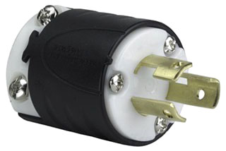 Quick-Thread Assembly Screws and Cord-Grip Screws Come Backed-Out, Ready-to-Wire; Industrial-Strength, Brass Alloy Plug Blades and Connector Contacts Resist Heat Rise, Provide Excellent Conductivity; Raised Ribs Provide Non-Slip Gripping Profile for Turning to Lock and Unlock; Double Dovetail Design Provides Superior Protection Against Cord Pull-Out Forces; Rounded Back Contour Reduces Snags and Hang-Ups on the Job Site; Scallop Shell Design Provides Non-Slip Gripping Surface for Insertion and Withdrawal; Visible Stamped NEMA Configuration and Device Rating; New-Design External Cord Grips Provide Visible Assurance of Safe and Proper Cord Retention; Integral Flexible Rubber Cord Grommet Conforms to and Seals Around So Cord to Provide Protection from Oils, Water or Chips Entering Wiring Chamber