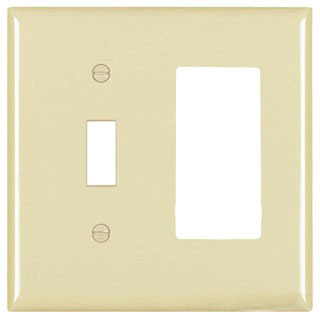 Wall Plate; Type Combination; Configuration (1) Decorator, (1) Toggle Switch; Number of Gangs 2; Designated Size Standard; Material 0.07 Inch Thk Nylon; Color Ivory; Overall Dimension 4.75 Inch W x 4.6875 Inch H; Mounting Type Screw Mount; Application Commercial, Industrial and Residential; Approval UL (Canada and US)