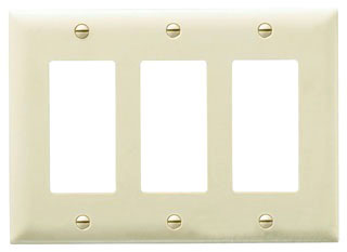 Molded of Rugged, Practically Indestructible Self-Extinguishing Nylon; Extra 3/16 Inch Width and Height than Standard Size Wall Plates; Provide Better Sheet Rock Coverage with Standard Size Appearance; Available in Unbreakable Nylon 6 Construction Only 3-Gang, Ivory, Nylon 6, Decorator, Standard, Wall Plate Overall Dimension 6.563 Inch W x 4.6875 Inch H; Mounting Type Screw Mount; Application Commercial, Industrial and Residential; Approval UL (Canada and US)