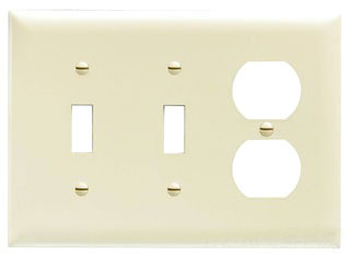 Wall Plate; Type Combination; Configuration (1) Duplex Receptacle, (2) Toggle Switch; Number of Gangs 3; Designated Size Standard; Material 0.07 Inch Thk Nylon; Color White; Overall Dimension 6.563 Inch W x 4.6875 Inch H; Mounting Type Screw Mount; Application Commercial, Industrial and Residential; Approval UL (Canada and US)