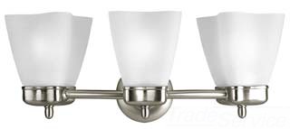 Bath/Vanity Lighting Fixture; Lamp Type Incandescent; Number of Lamps 3; Wattage 100 W; Lamp Base Type Medium; Material Steel, Inflected Curved Etched Opal Glass Shade; Finish Brushed Nickel; Width 20-1/8 Inch; Height 8 Inch; Extension 8-1/8 Inch; Family Michael Graves; Approval UL, CUL; Application Damp Location; Mounting Type Wall; Includes Outlet Box Mounting Strap