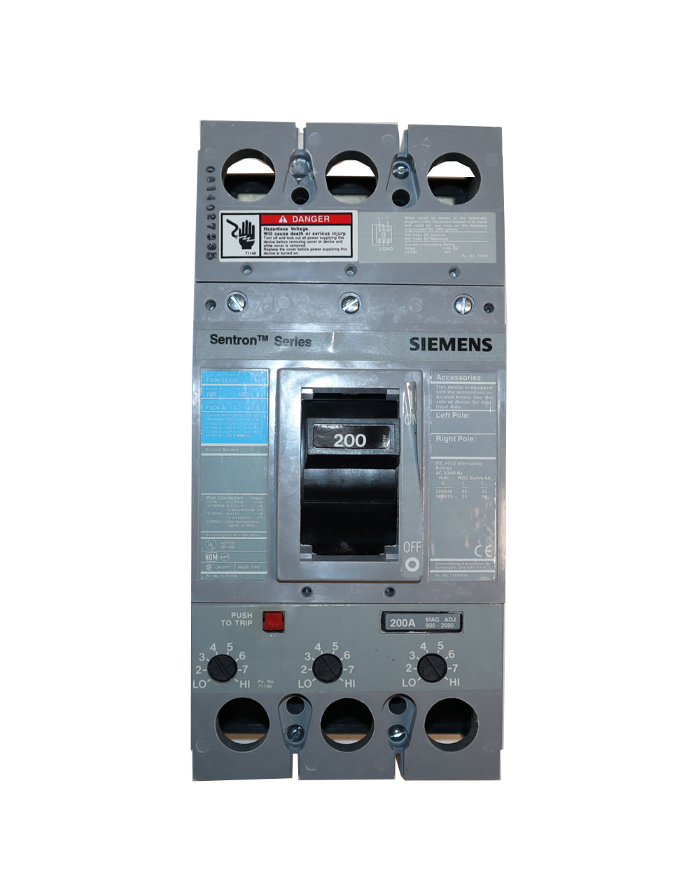 Molded Case Circuit Breaker; Type Thermal Magnetic, Non-Interchangeable Trip; Frame Type FD; Voltage Rating 600 Volt AC at 50/60 Hertz, 500 Volt DC; Maximum AC Voltage Rating 600 Volt; Maximum DC Voltage Rating 500 Volt; Current Rating 200 Amp at 40 Deg C; Number of Poles 3; Interrupting Rating 22 Kiloamp at 600 Volt AC, 18 Kiloamp at 500 Volt DC; Size 4.5 Inch Width x 4 Inch Depth x 9.5 Inch Height; Approval UL 489, CSA C22.2, CE, Federal Specification Class 20A; RoHS Compliant; Applicable Standard IEC 947-2