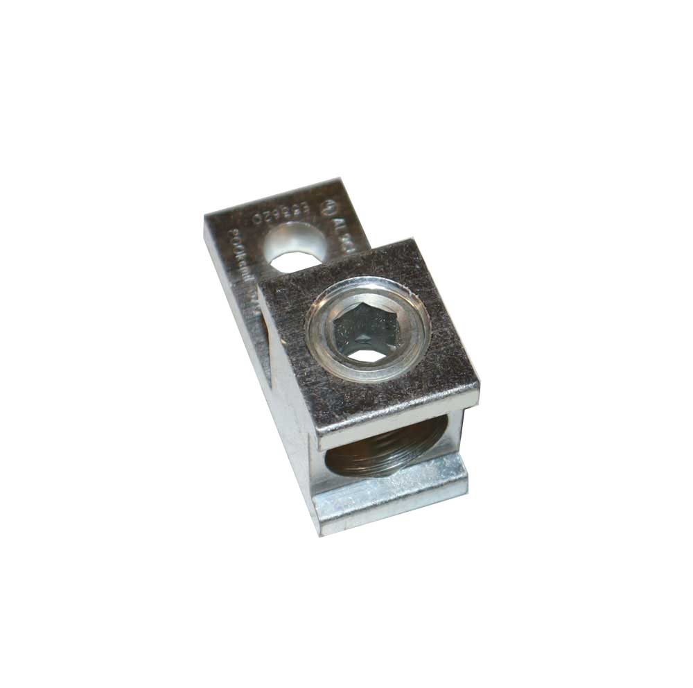 Meter Center Connector Lug; Wire Size 3/0 AWG to 800 KCMIL; Material Tin Plated 6061-T6 Aluminum; Used On K-5/K-7 Type Meter Mounting Device; Approval UL; Size 3-1/4 Inch L x 1-5/16 Inch W x 1-13/16 Inch H; Stud Opening Size 9/16 Inch; Pressure Screw Head Size 1/2 Inch Allen
