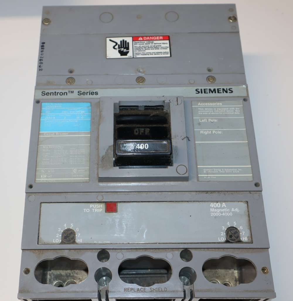 Molded Case Circuit Breaker; Type Molded Case, Thermal Magnetic; Frame Type JD; Voltage Rating 240 VAC at 50/60 Hz, 250 VDC; Maximum AC Voltage Rating 240 V; Maximum DC Voltage Rating 250 V; Current Rating 400 Ampere at 40 Deg C; Number of Poles 2; Interrupting Rating 65 Kiloampere at 240 VAC, 30 Kiloampere at 250 VDC; Terminal Type Not Included; Size 7.5 Inch W x 5.44 Inch D x 11 Inch H; Approval UL, CSA