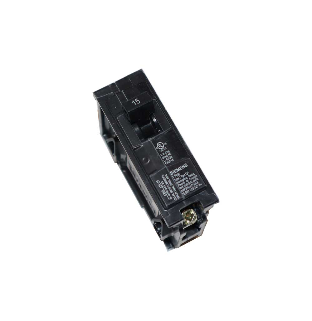 Plug-In Circuit Breaker; Type Thermal and Fixed Magnetic Trip; Number of Poles 1; Voltage Rating 120 VAC at 50/60 Hz; Current Rating 15 Ampere at 40 Deg C; Interrupting Rating 10 Kiloampere; Terminal Type Load Lug; Wire Size 14 to 6 AWG (Copper/Aluminum); Mounting Plug-In; Used On Loadcenter; Size 1 Inch W x 3 Inch D x 3-1/8 Inch H; Approval UL; Frame Type QP