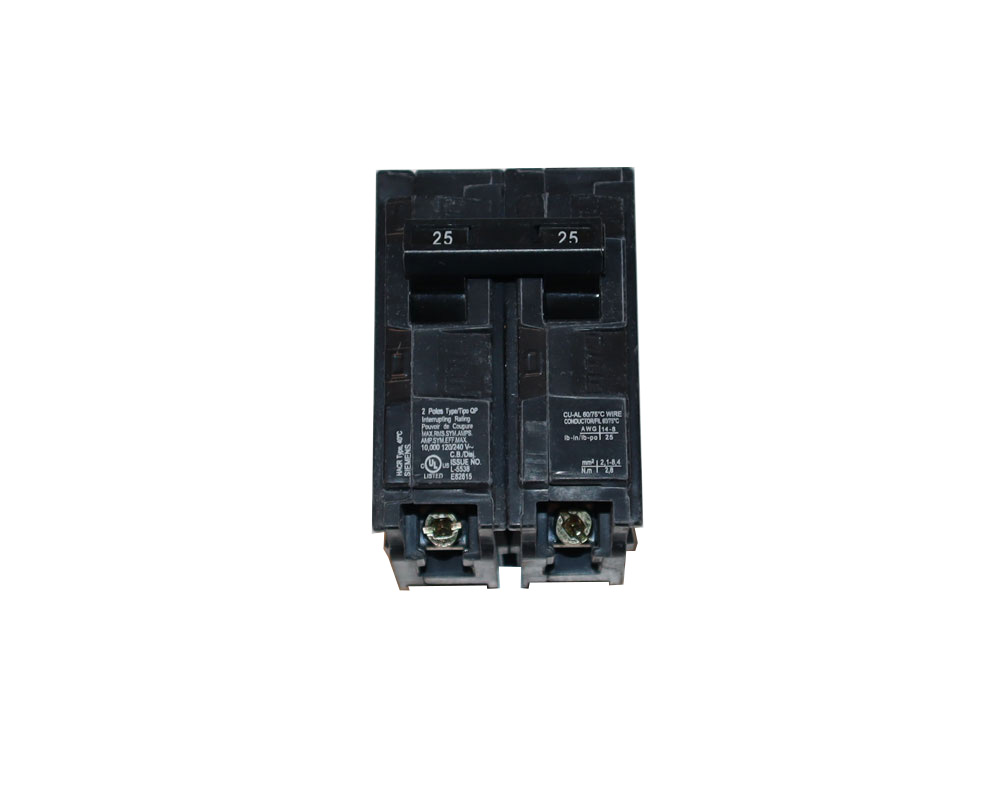 HACR Rated 120/240 VAC at 50/60 Hz, 25 A, 10 kA, 2-Pole, QP-Frame, Load Lug Terminal, Plug-In Mount, Thermal and Fixed Magnetic Trip, Common Trip, Miniature Circuit Breaker Frame Type QP; Enclosure Type NEMA 1 (Surface/Flush), 3R (Outdoor); Applicable Standard IEC