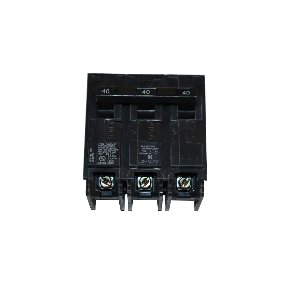 240 VAC at 50/60 Hz, 40 A, 10 kA, 3-Pole, QP-Frame, Load Lug Terminal, Plug-In Mount, Thermal and Fixed Magnetic Trip, Common Trip, Miniature Circuit Breaker Circuit Breaker; Type Common Trip; Number of Poles 3; Voltage Rating 240 VAC; Current Rating 40 Ampere; Interrupting Rating 10 Kiloampere; Mounting Plug-In; Used On Loadcenter; Size 3.7 Inch W x 12.8 Inch D x 3.4 Inch H; Approval UL 489