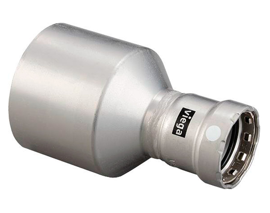 The first and only carbon steel press system for 2-1/2 to 4 inch fittings; Compared to welding, up to 40-60% installation cost savings and up to 90% installation time savings; Suitable for use with Schedule 10 to Schedule 40 black iron pipe; Approved for more applications than any other carbon steel press fitting system; Eliminates cleanup and reduces callbacks compared to welding; No fire watch or burn permits necessary for use; Includes the Viega Smart Connect technology to help identify unpressed connections; Can be installed in higher temperature applications thanks to FKM sealing element