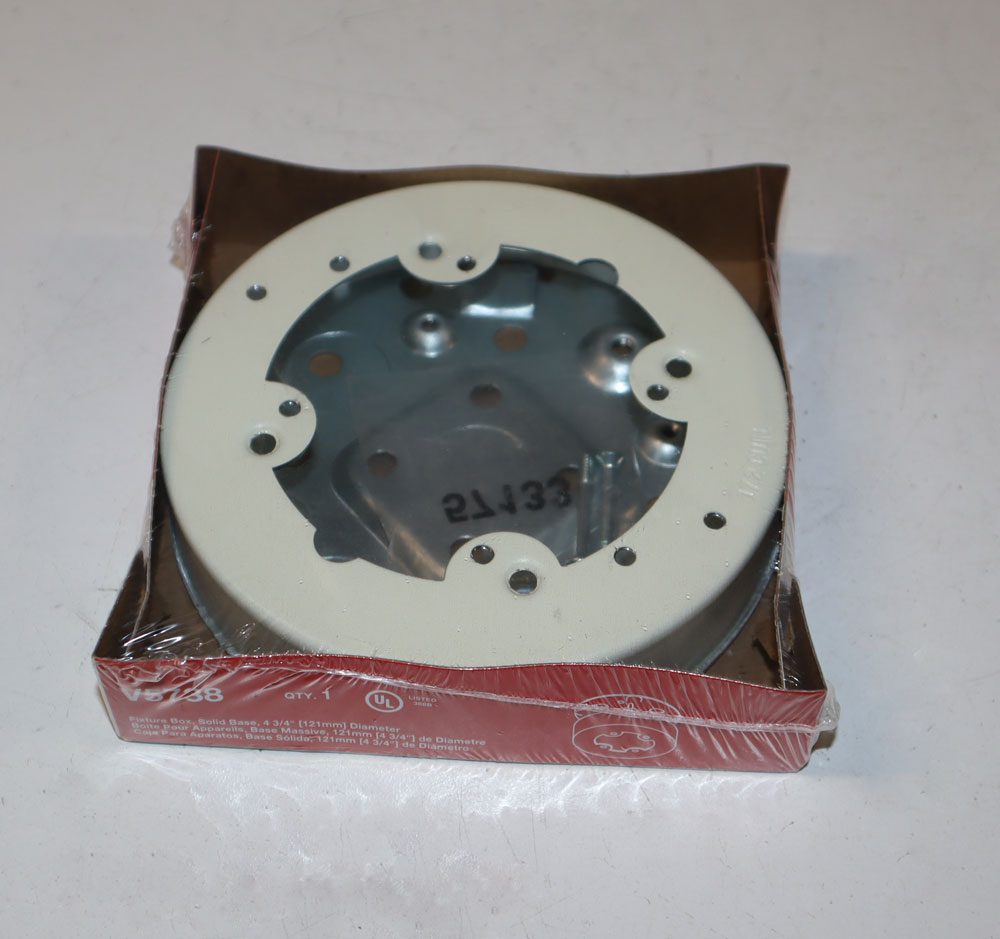 Used to Hang Fixtures; Cover Accepts Devices with Mounting Screw Centers of 2-3/4 Inch 3-1/2 Inch and 4-1/16 Inch; Base has Four Holes for Fixture Studs, Four 1/2 Inch Trade Size KOs, and Raised Section for Trade Size KO, and Raised Section for or Pull Box with 5736 Blank Cover