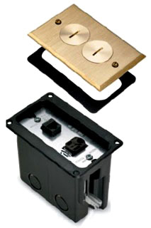 Floor Box Assembly; Shape Rectangular; Height 3-3/4 Inch; Width 2-1/8 Inch; Depth 3-7/8 Inch; Number of Knockouts 4; Knockout Size (2) 1/2 Inch Bottom, (2) 1/2 Inch Side; Number of Gangs 1; Service Type Multiple; Installation Wood Floor; Device Capacity (1) 15 Ampere Tamper Resistant Duplex Receptacle; Approval UL (Canada and US); Cover Plate Finish Brass
